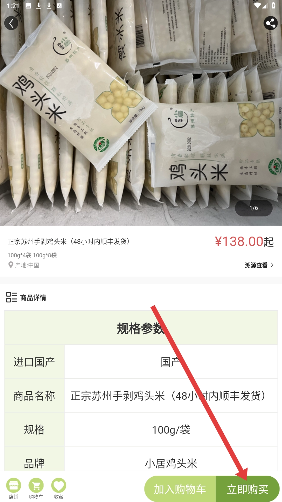 在综合批发专区的商品列表里,找到你喜欢的商品,比如正宗苏州手剥鸡头米,然后点击它。