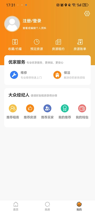 用户点击右下角的“我的”就能进入个人中心,在这里可以查看自己收藏和预定的房源;成功租房后,还能使用维修与保洁服务。