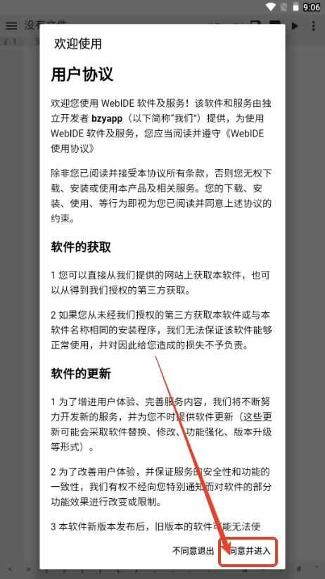 进入软件后我们需要同意用户隐私政策;