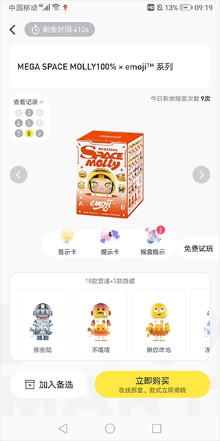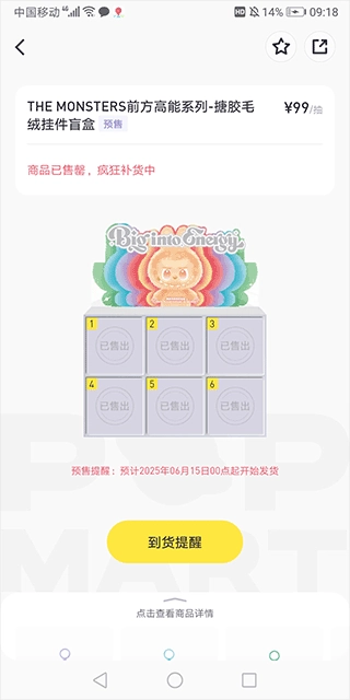 每日18点会开展补货活动,建议您提前设置提醒,以便及时参与补货时段的抽盒环节。
