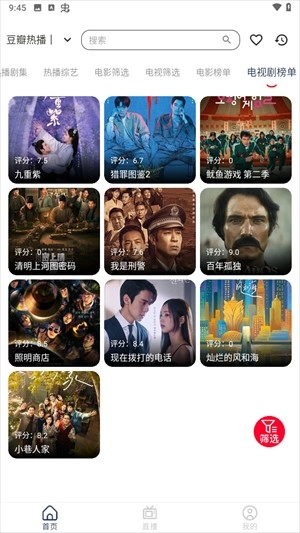 3、同理也是有电视剧榜单的并且还加入了相应的豆瓣评分,可以帮助用户进行参考,观看各种有意义,有价值的电视剧。