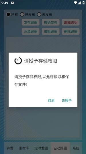 点击授予权限功能