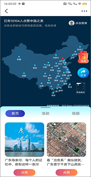 3、点击进入后我们即可参加活动,为中国的各个省份点赞,而且点亮全部省份还可以获得奖品哦。