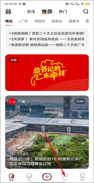 1、打开软件后,在下方的板块中选择“活动”进入;