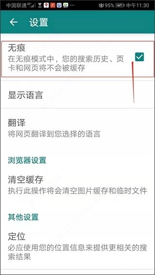 4、在设置页面点击勾选无痕
