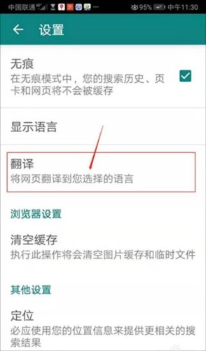 进入设置页面,点击翻译。见下图