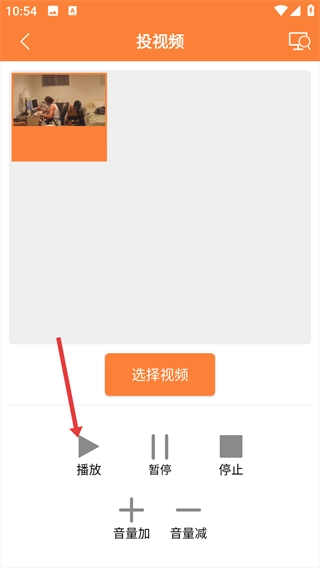 选定视频后回到投视频界面,点击“播放”按钮,即可启动投屏。