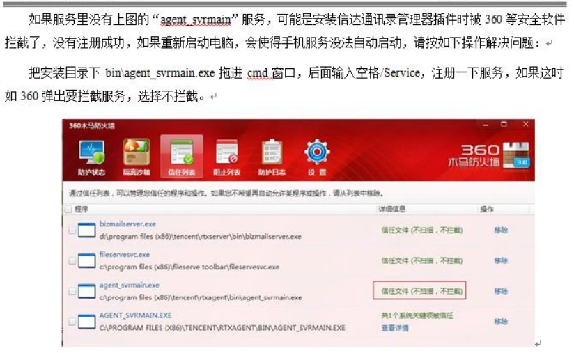 杀毒软件,尤其是360,对Windows服务agent_svrmain进行了拦截;请检查Windows服务列表里,agent_svrmain服务是否正常启动(或者能否启动),若无法启动则按照下图操作。