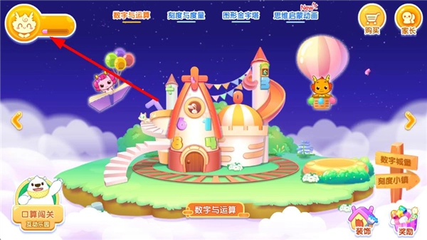 打开小伴龙玩数学应用,点击主界面左上角那个带有小伴龙形象的图标。