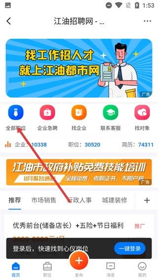 在【江油都市网】的首页找到【求职招聘】的功能入口,点击后即可进入招聘板块。