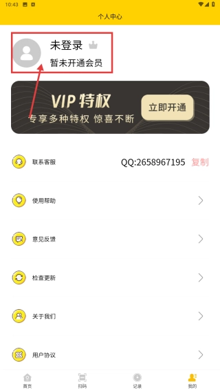 打开二维码制作神器这款软件,接着点击底部的“我的”选项,就能进入个人中心页面了。