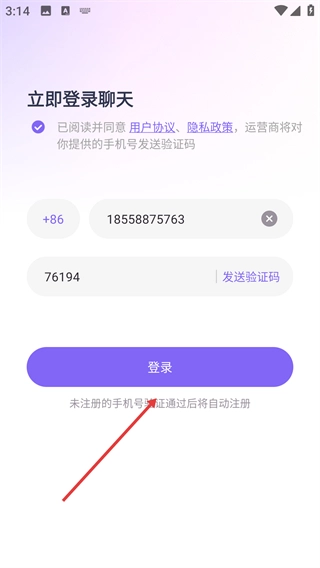 勾选【已阅读并同意用户协议、隐私政策】,输入手机号码。