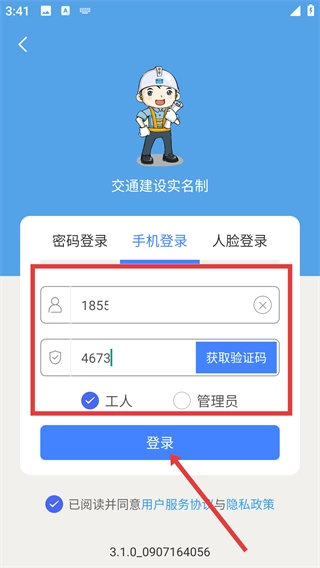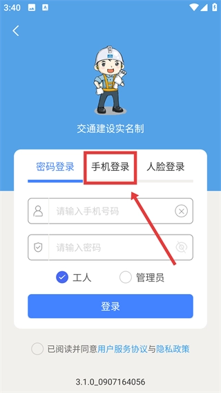 在手机登录界面,输入手机号与验证码,勾选同意相关协议后,点击【登录】按钮,即可完成登录流程。
