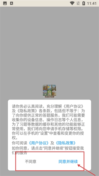 在阅读《用户协议》和《隐私政策》后,点击【同意并继续】按钮,就能进入应用,这一步骤是使用应用功能的必要前提。