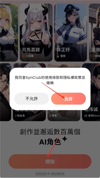 打开软件点击“开始”,然后允许同意使用隐私协议。