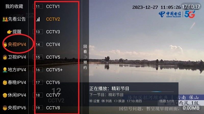 还能实时观看央视频道,只需点击左侧的央视频道列表,就能选择自己想要的频道。