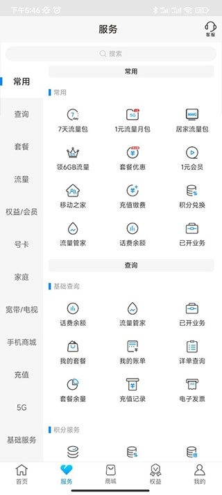还拥有流量、套餐、权益会员等多种服务;