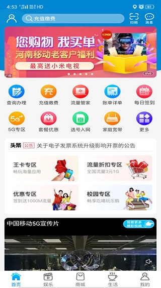打开河南移动应用,完成账号登录后,在首页就能便捷查询话费余额、剩余流量以及语音通话时长。