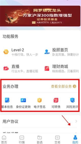 点击“我的”,选择业务办理;