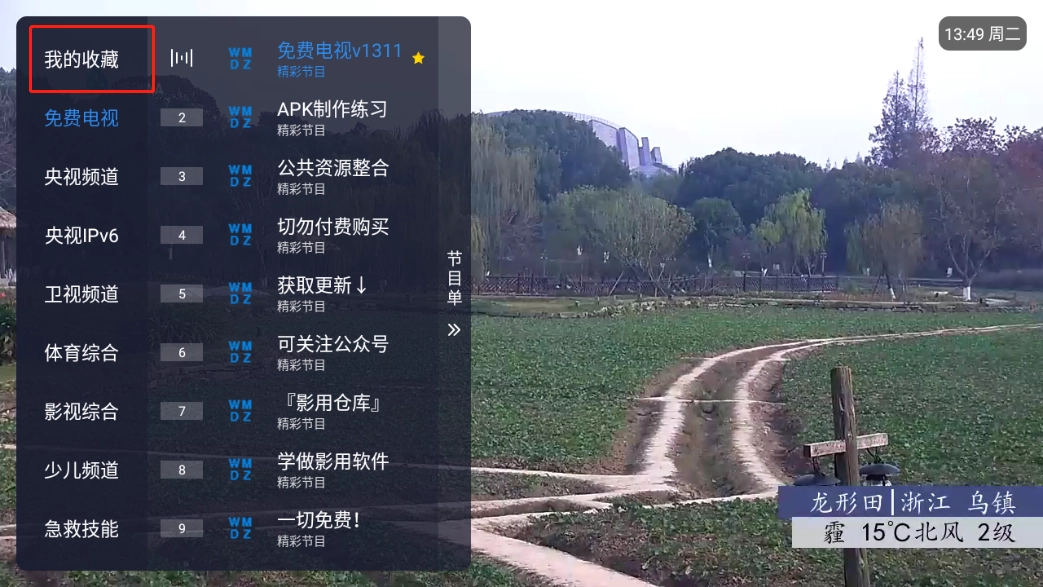 接下来,找到并点击“我的收藏”这一选项,就可以看到你此前收藏过的所有频道的列表了。