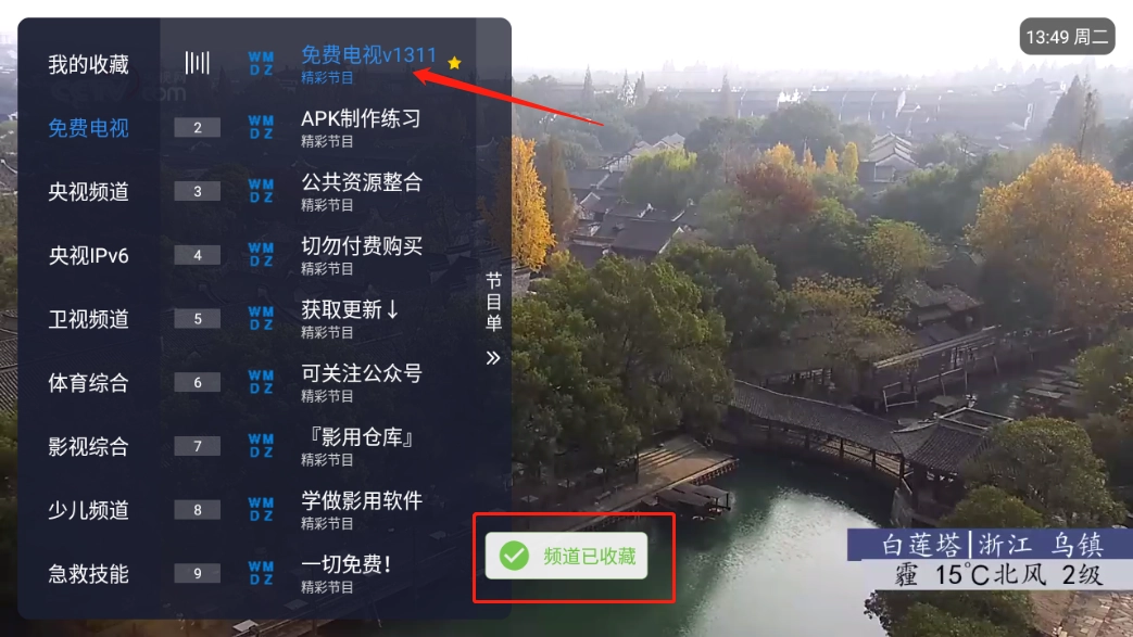 首先,在电视节目单里找到你想收藏的频道,接着长按该频道图标几秒钟。