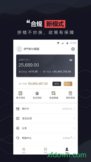 个人中心支持线上查看投资收益,还能在线提现账户余额。
