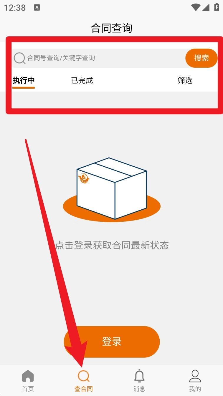 在“查合同”页面输入合同编号或者相关关键词后,系统就会自动筛选出对应的执行中合同记录以及已完成合同记录。