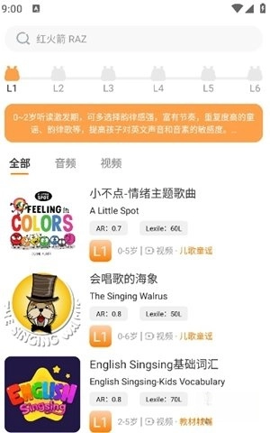 2、首页会智能推荐适合不同年龄段的分级课程以及有趣的音视频资源,能帮助用户轻松开启每日的学习之旅。