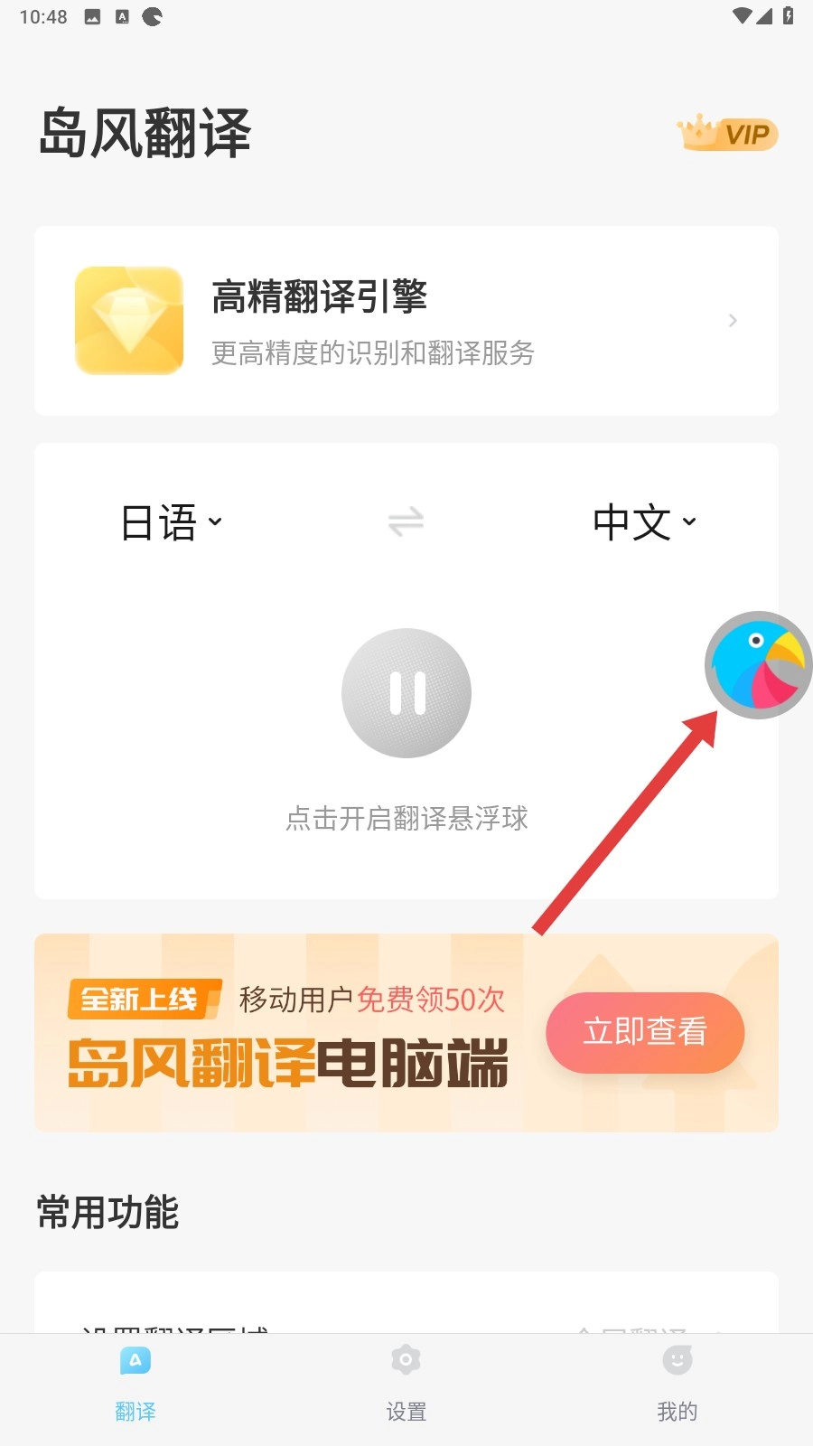 4、设置完成后,界面上会出现【翻译悬浮球】,这时就能通过它在游戏等场景中进行翻译,开启便捷的翻译体验啦。