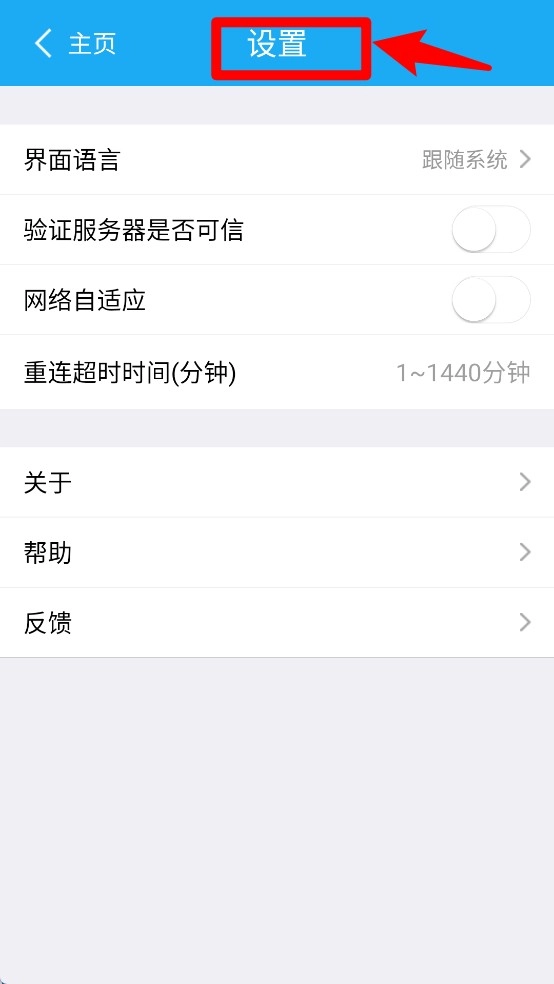 点击右上角的齿轮图标进入“设置”页面,开启网络自适应功能并启用服务器验证。