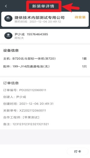 点击“新装单详情”页面,能够查看客户公司名称、预约时间以及订单状态,从而为上门加车任务做好充分准备。