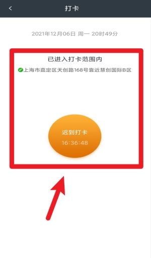 当工程师进入打卡区域后,系统会提示地理位置匹配成功,这时点击“到达打卡”按钮就能完成打卡流程。