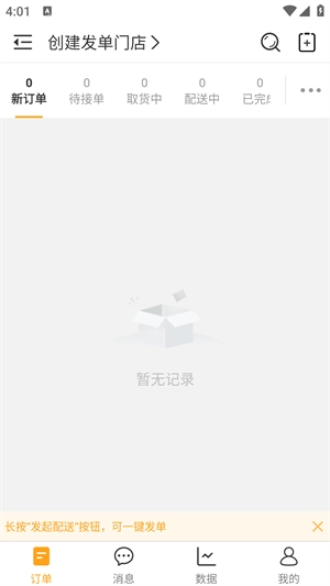 用户可以通过选择门店发单功能,一键完成外卖配送订单的发单操作。