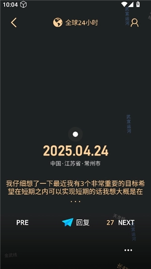 点击“全球24小时内”这个选项,就能查看来自不同时间和地点的用户留言内容。