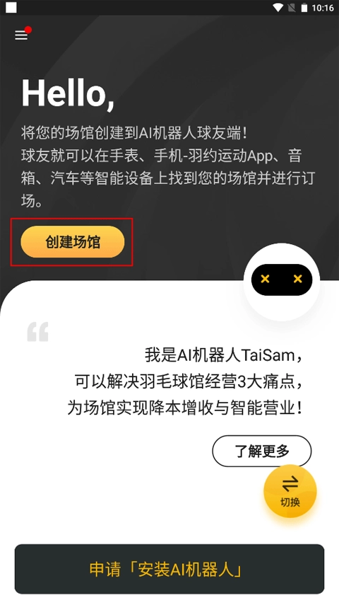 场馆创建完成后,即可申请安装AI机器人协助管理和运营羽毛球馆。