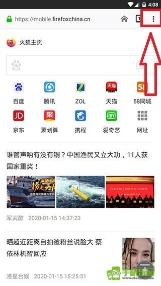 1、安装并打开手机版Firefox浏览器,然后点击右上角的三点图标。