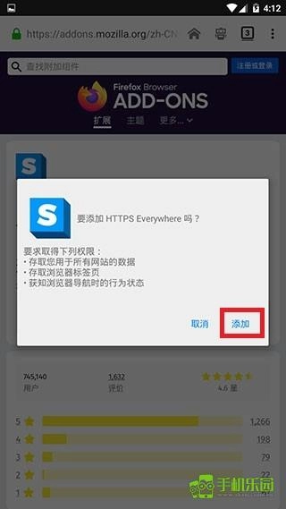 5、点击“添加到Firefox”,等弹出确认框后点击“添加”按钮,稍作等待即可完成添加。