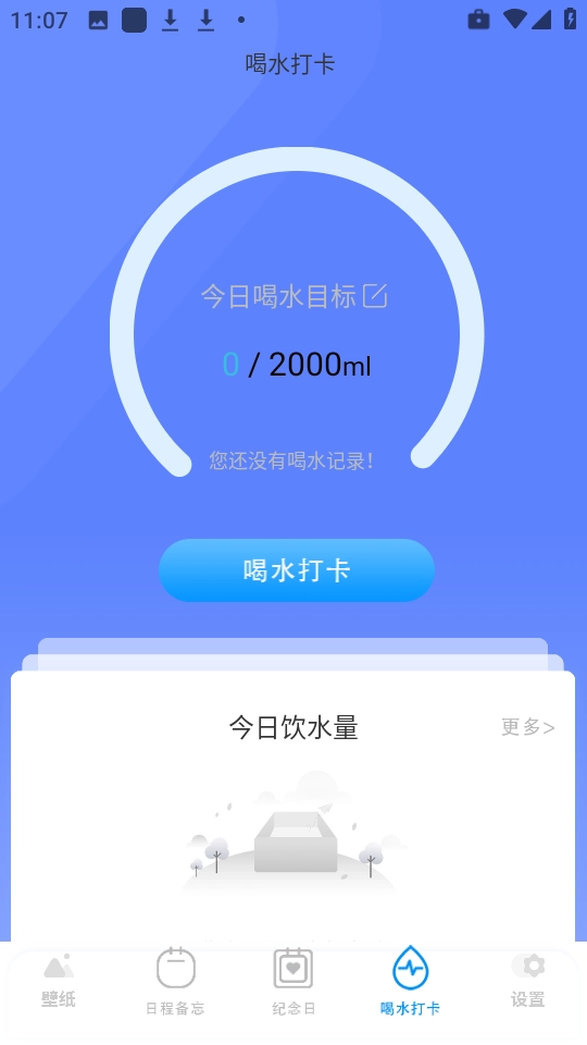 接着点击下方的“喝水打卡”按钮,就能实时记录你的饮水目标了。