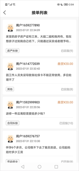 【悬赏咨询服务】用户可通过应用一键发起法律问题悬赏,与律师进行一对一沟通,交流不受时间约束,且我们会全程对律师的服务质量进行监督。