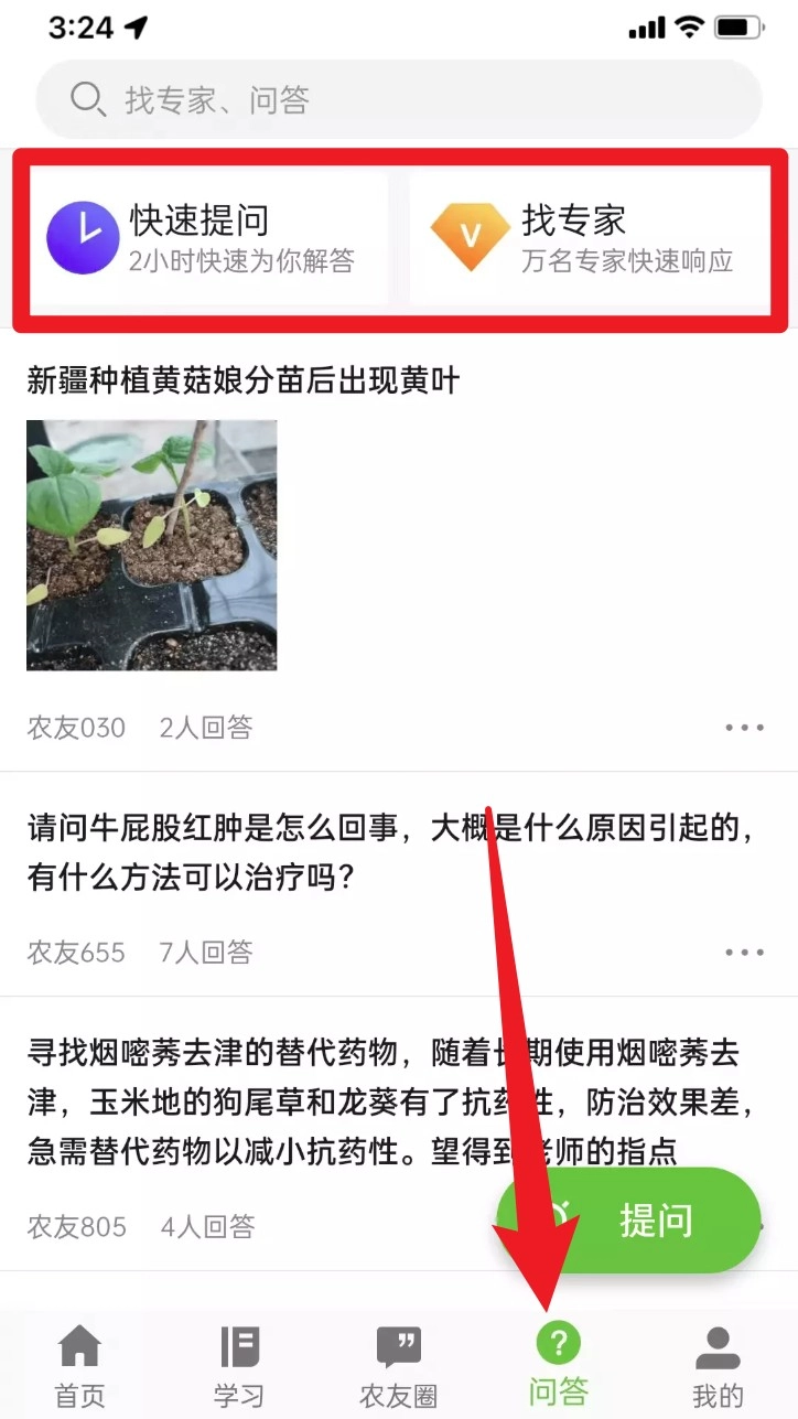 在“问答”页面,您能够迅速发起提问,系统会智能匹配合适的专家来解答问题,同时也可以浏览其他用户的提问和对应的答案。