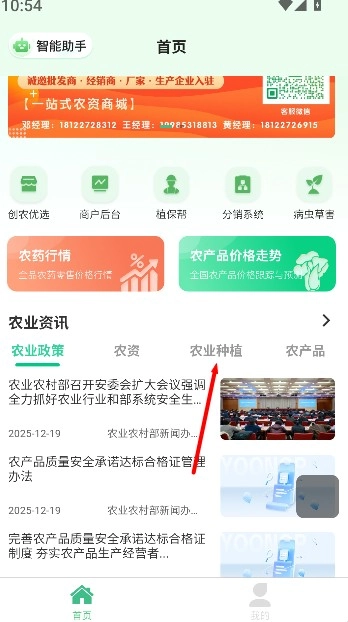 1、打开《优农帮》软件首页,点击农业种植板块,浏览种植相关的分类内容。