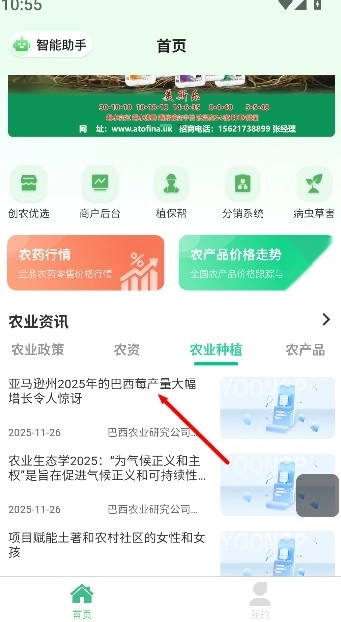 在农业种植页面里,点击进入新闻阅读板块,就能浏览到相关的农业资讯和种植信息。