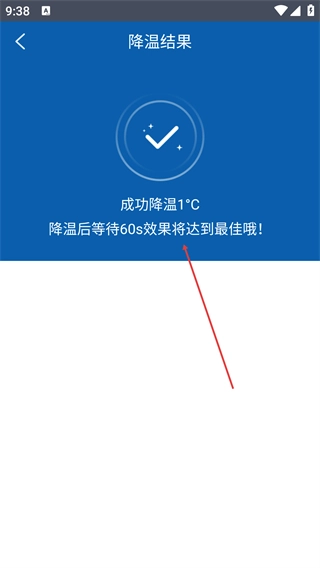 4、降温完成后,页面会展示降温结果,提示成功降温的幅度及效果等待说明。