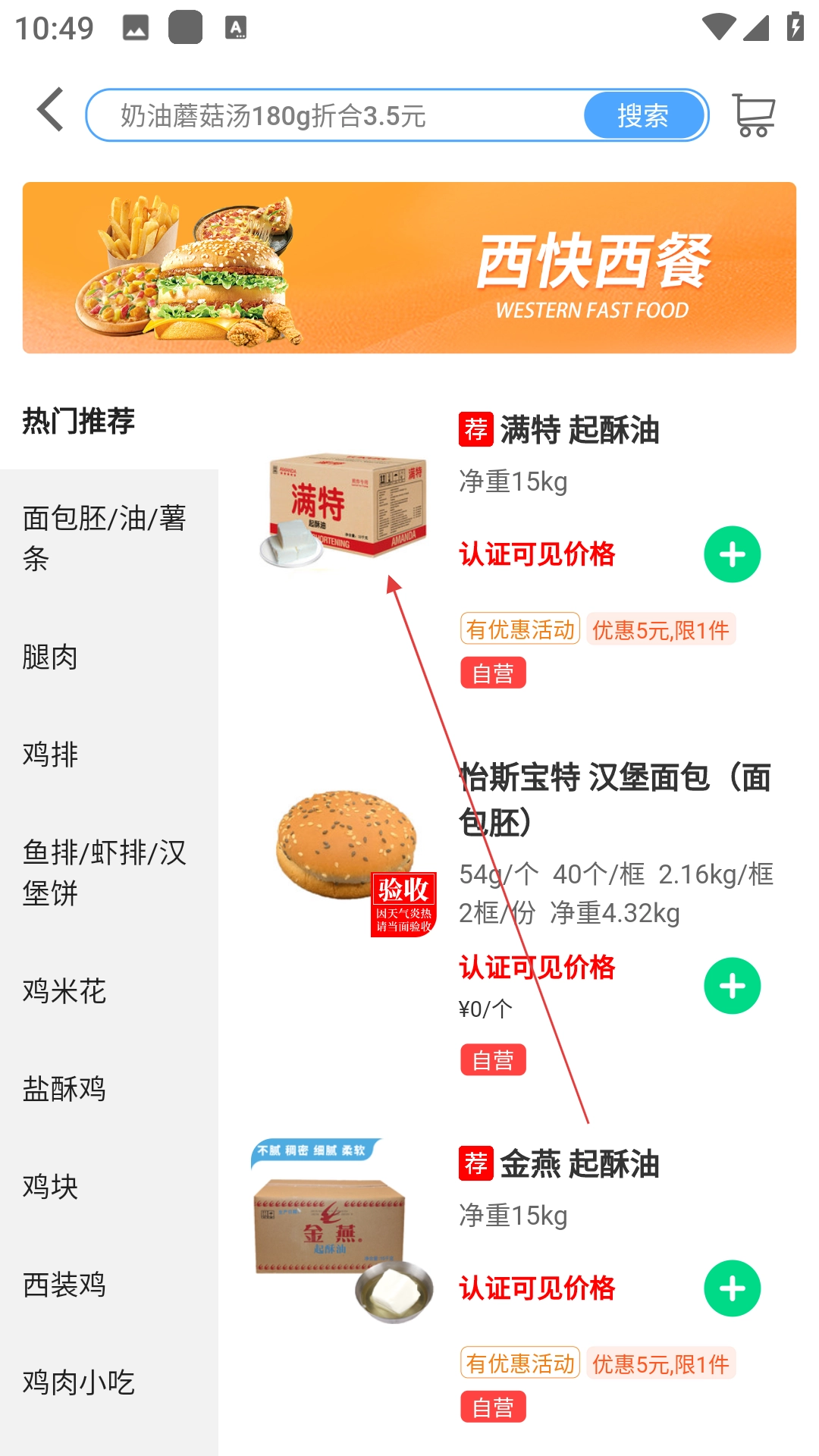 3、在【特价促销】分类下,可看到如【蓝威-西装鸡】等商品,点击对应商品可进入详情页。
