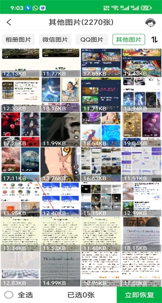 2、扫描操作结束后进入所有图片的页面,能看到该页面呈现出2288张图片,涵盖相册图片、微信图片等不同类别,用户可以浏览各类别的图片内容。