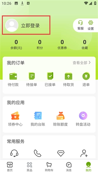 2、进入【我的】页面后,点击顶部的【立即登录】按钮,可进入登录相关操作界面。