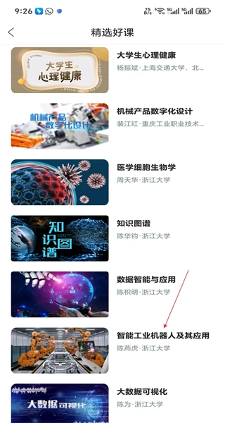 2、进入精选好课的全部课程页面,浏览展示的多门课程,找到智能工业机器人及其应用课程,准备进入课程详情页。