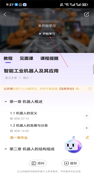 3、进入智能工业机器人及其应用课程详情页,查看课程时长学习周期等信息,找到加入学习按钮并点击完成课程加入。