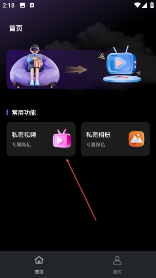 1、进入首页,点击【私密视频】选项,进入免费私藏播放器的操作页面。