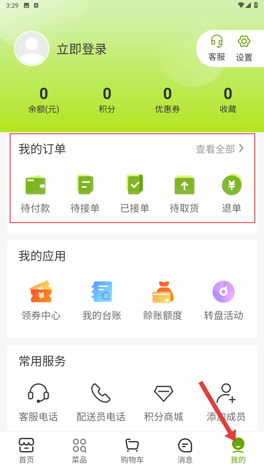 4、点底部【我的】,在【我的订单】查待付款、待取货等订单状态。